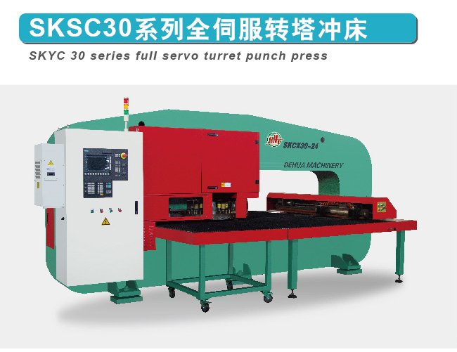 SKSC30系列全伺服转塔冲床,采用全套伺服冲压总成,更高速,更稳定,更静音,更经济,更环保,更节能,保养简单,功能强大。